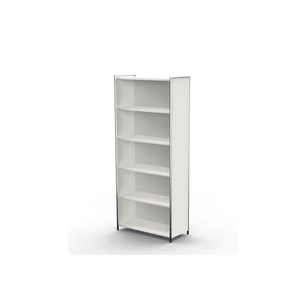 Die Stellfüße ermöglichen ein exaktes Ausrichten, auch auf leichten Bodenunebenheiten. Regale ausgestattet mit Sichtrückwand.