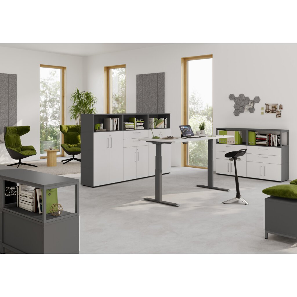 2 Ordnerhöhen bestehend aus: unteres Fach mit 2 Schubladen, oben ein offenes Fach