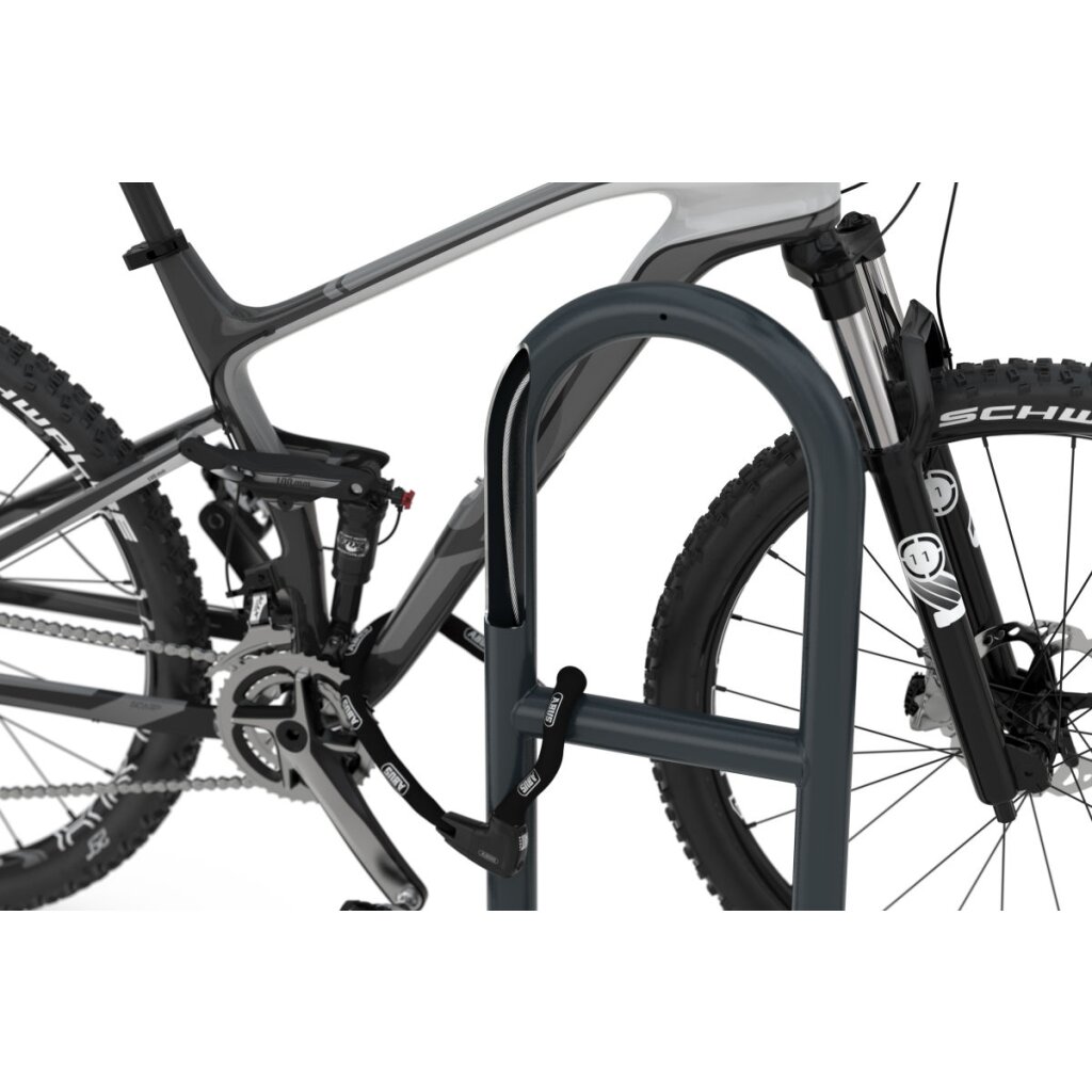 • integriertes Stahlseil verhindert ein Durchtrennen des Anlehnbügels und schützt auch gegen gut ausgerüstete Diebe optimal