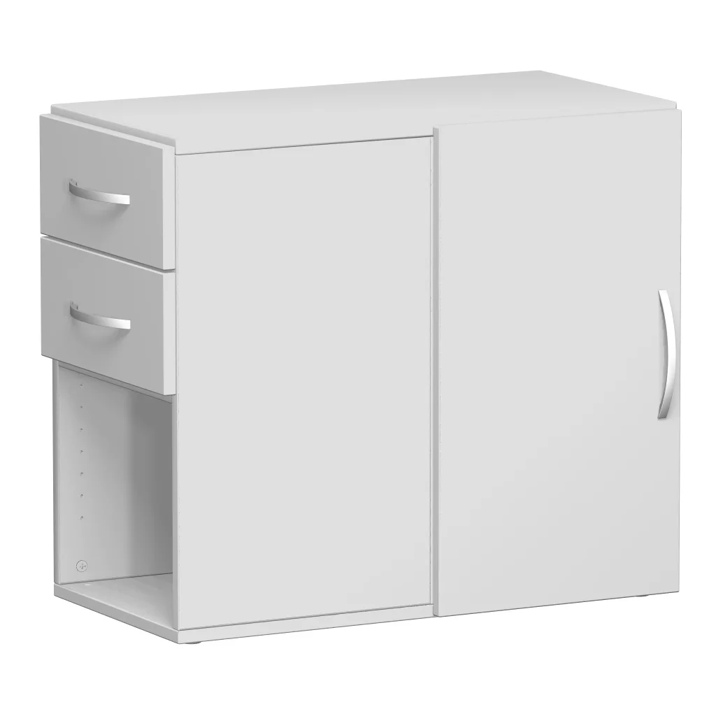 Anstell-Schrank mit Schubkasteneinsatz und Flügeltür, Dekor Front: Lichtgrau, Dekor Korpus: Lichtgrau