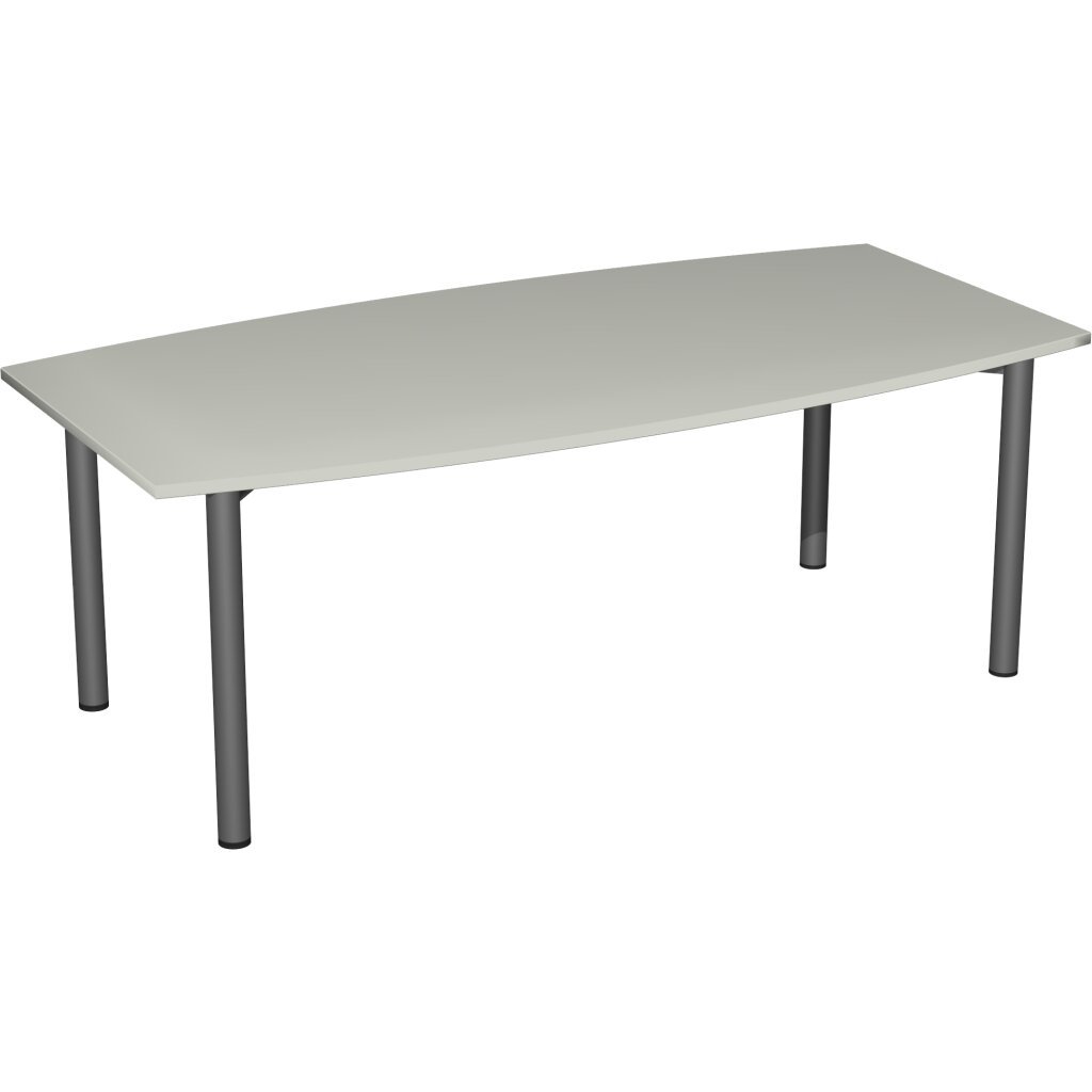 Besprechungstisch Bootsform 200 cm , 4-Fuss, Dekor: Lichtgrau, Gestell: Anthrazit