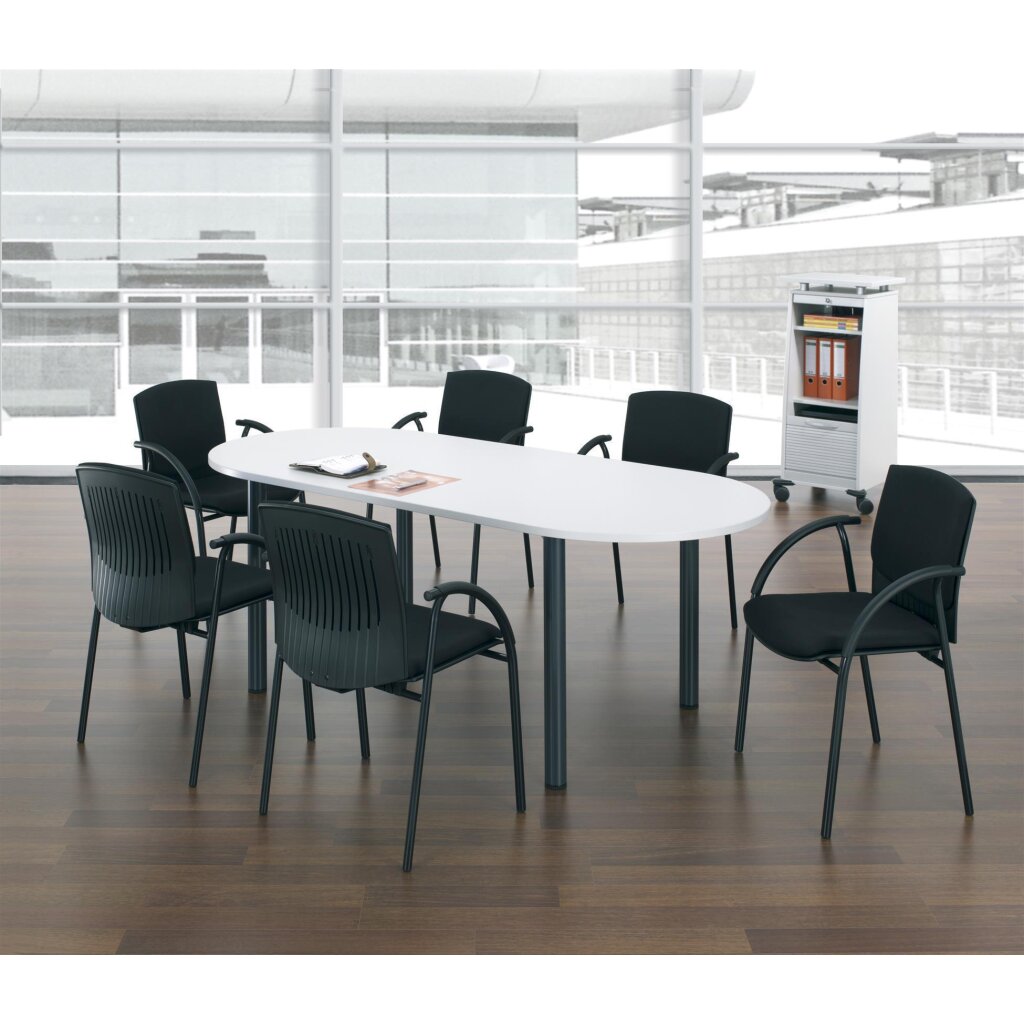 Besprechungstisch Oval, 4-Fuss, 200 x 90 cm, Dekor: Weiss, Gestell: Anthrazit
