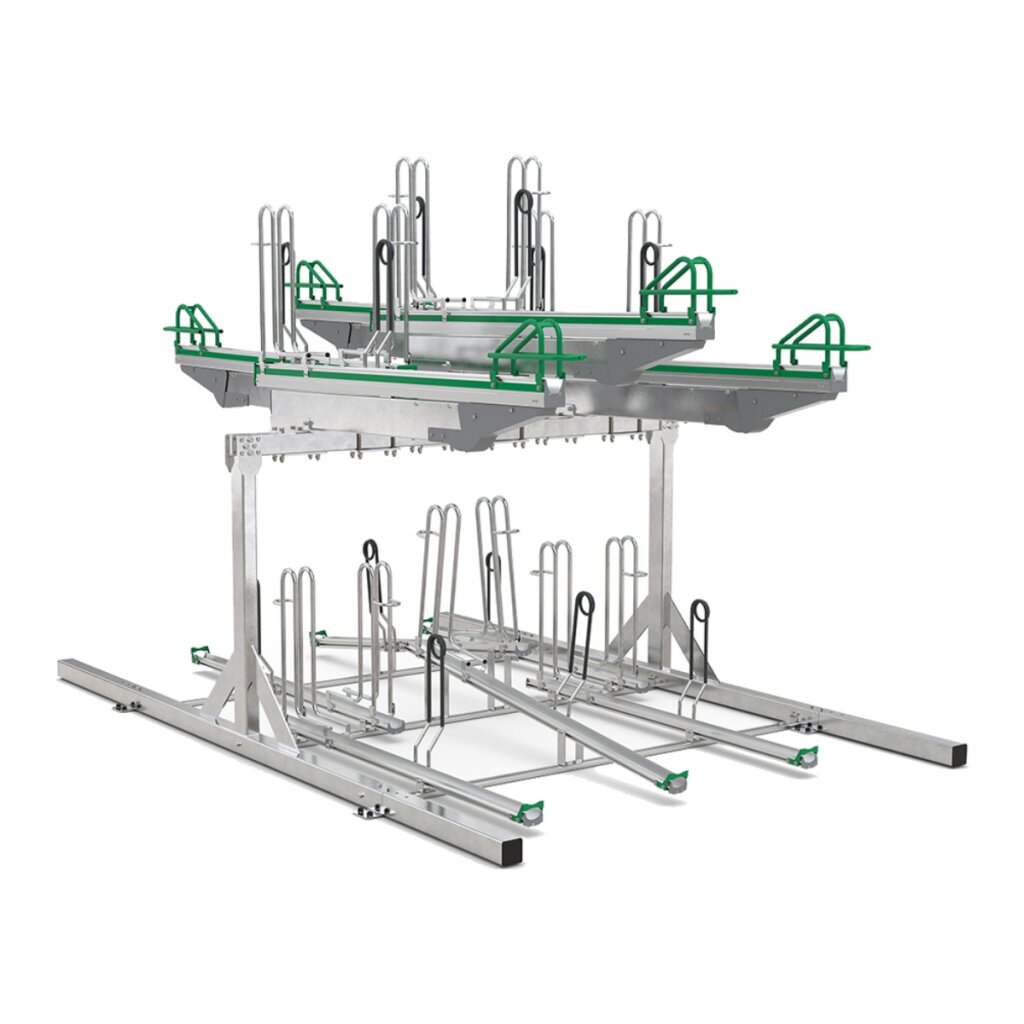 • platzsparendes Parken der Fahrräder durch abwechselnde Hoch-/Tiefeinstellung