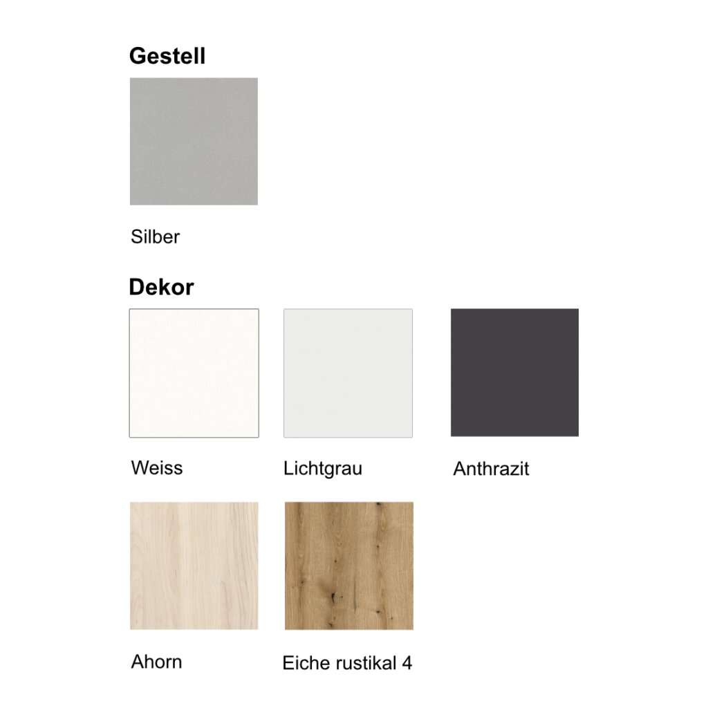 In folgenden Dekoren erhältlich: Weiss, Lichtgrau, Ahorn, Eiche und Anthrazit