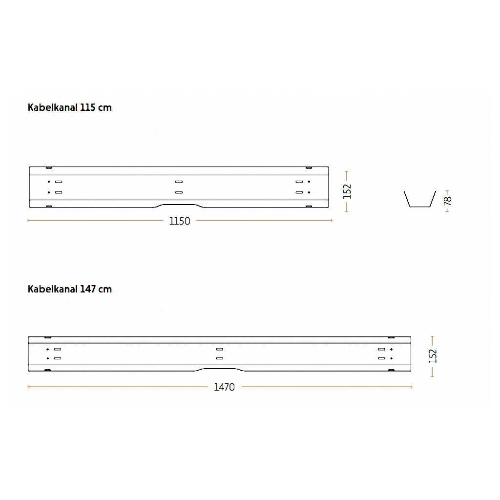 !!! Das Längemaß ist das reale Maß des Kabelkanal. Bitte bedenken sie bei der Montage noch an das Untergestell des Schreibtisches, falls der Kanal zwischen die Schreibtischfüsse montiert werden soll. Wir empfehlen immer den Kanal deutlich kleiner zu bestellen als das Tischmaß.