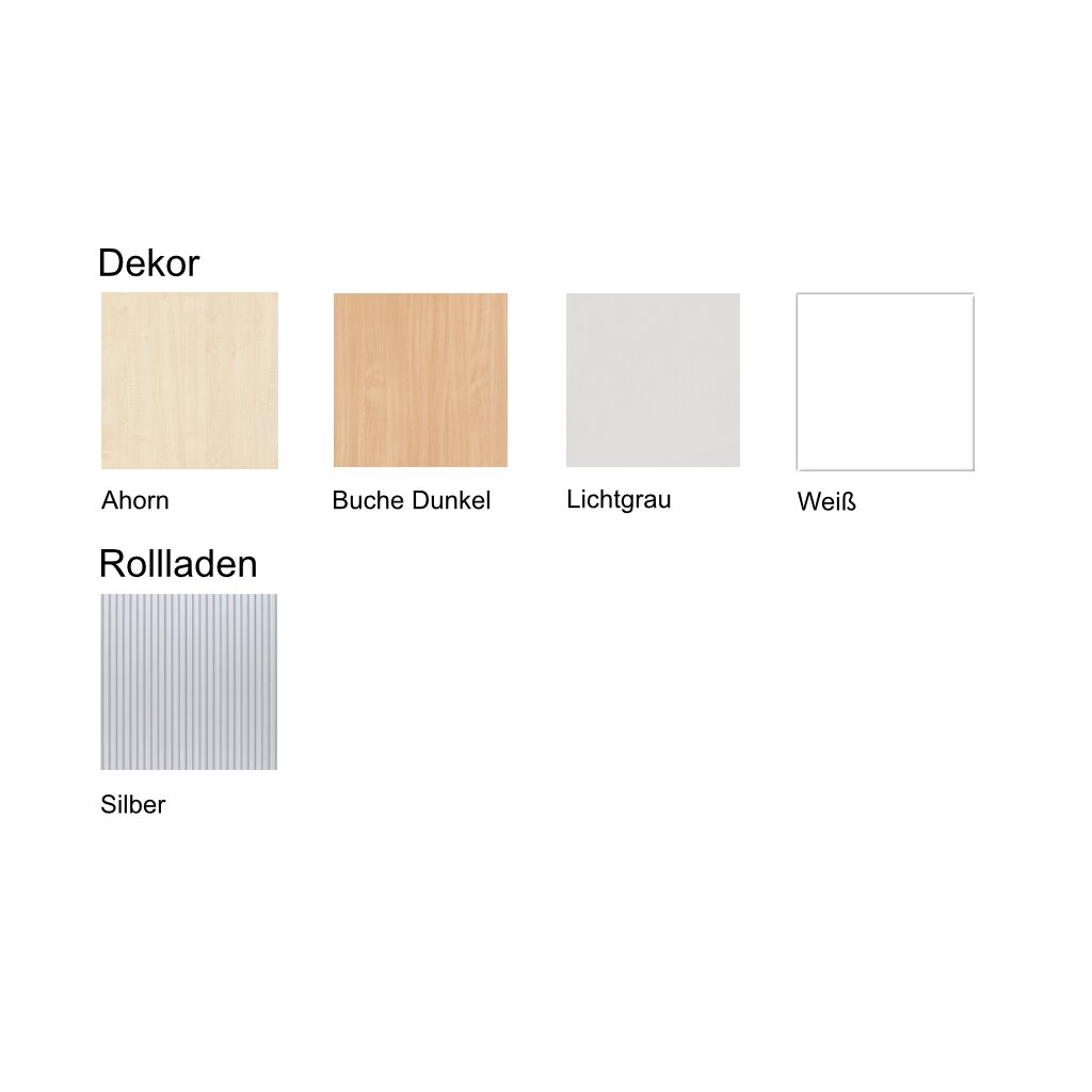 Es stehen 4 Dekore zur Auswahl (Ahorn, Buche Dunkel, Lichtgrau, Weiss):