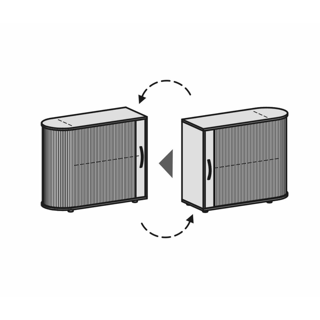 Der Rollschrank ist in 3 verschiedenen Ausführungen verfügbar: rechts anstellbar, links anstellbar, senkrecht und als Aufsatzschrank.