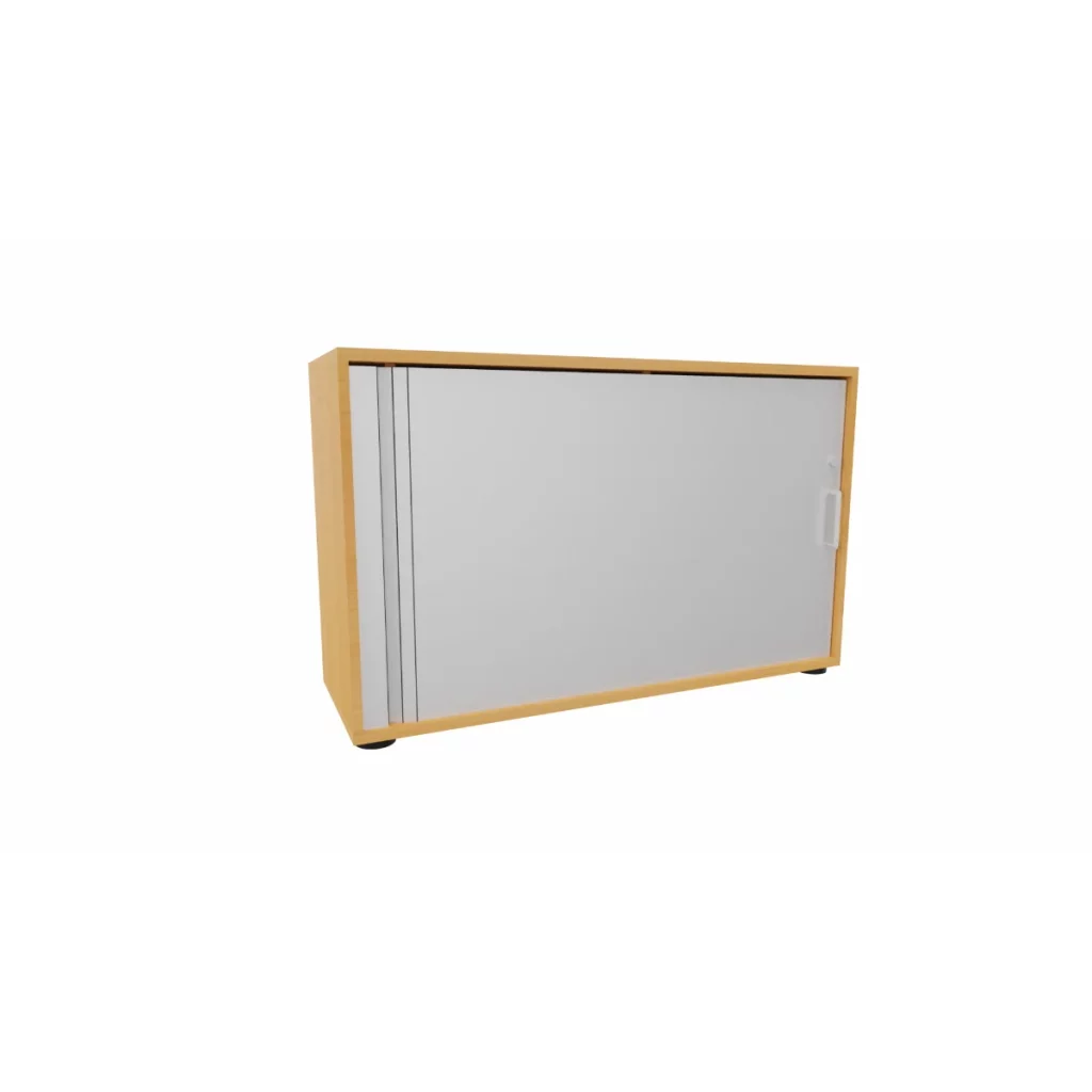 ROLLLADEN: Hochertiger, PVC-freier einteiliger Rollladen, in Kunststoffschienen gleitend, nach rechts schließend, absperrbar. 2 Ordnerhöhen.