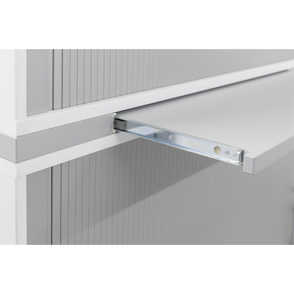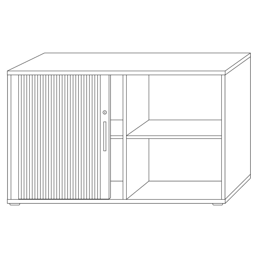 ROLLLADEN: Hochertiger, PVC-freier einteiliger Rollladen, in Kunststoffschienen gleitend, nach rechts schließend, absperrbar. 2 Ordnerhöhen.