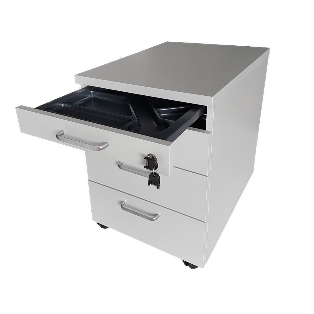 Rollcontainer 3 Schubladen + Utensilienauszug 60 cm tief Grau