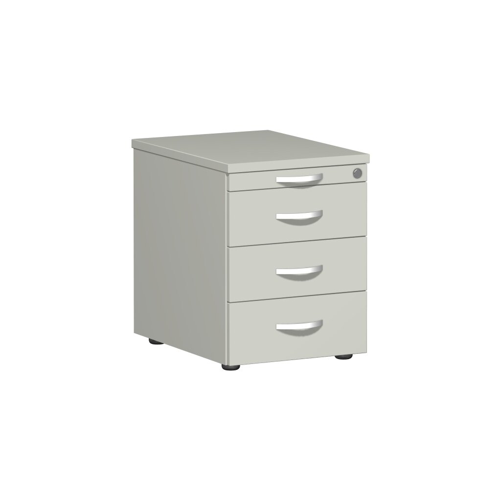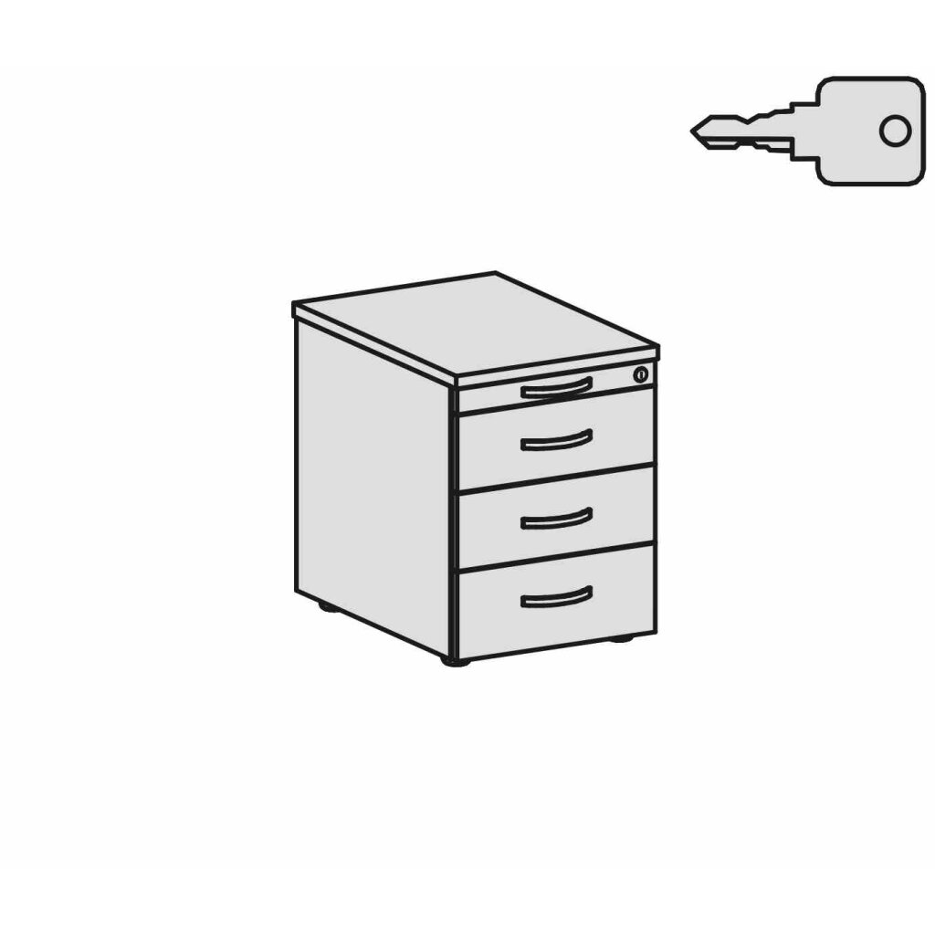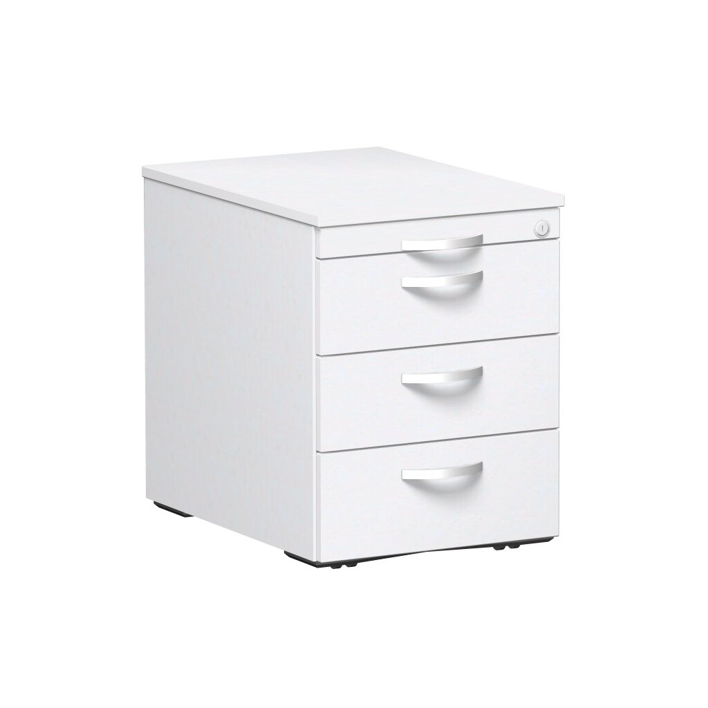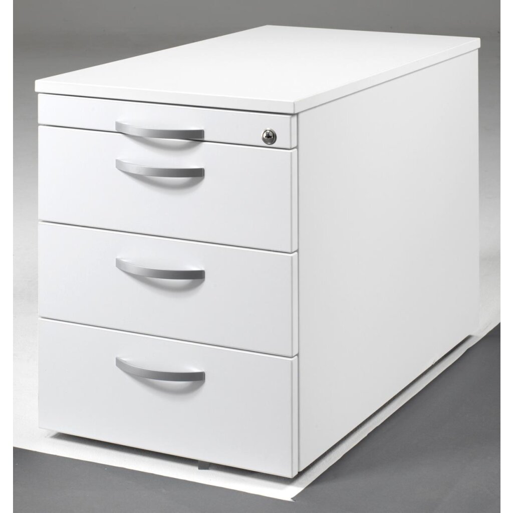 Rollcontainer 60 cm tief, 3+1 Schubladen, Dekor Front: Weiss, Dekor Korpus: Weiss