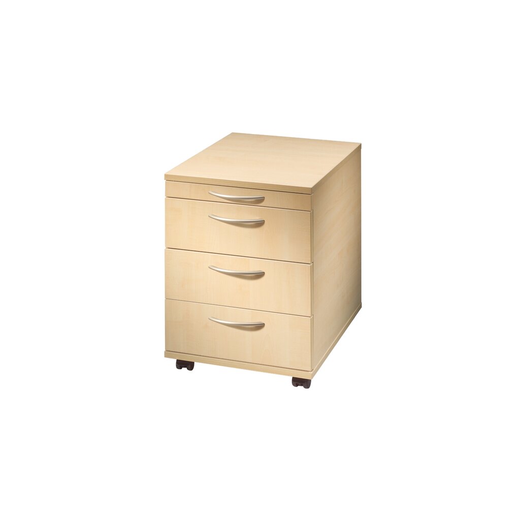 Rollcontainer mit 3 Schubladen + 1 Utensilienschublade, 58 cm Tief Ahorn/ Ahorn