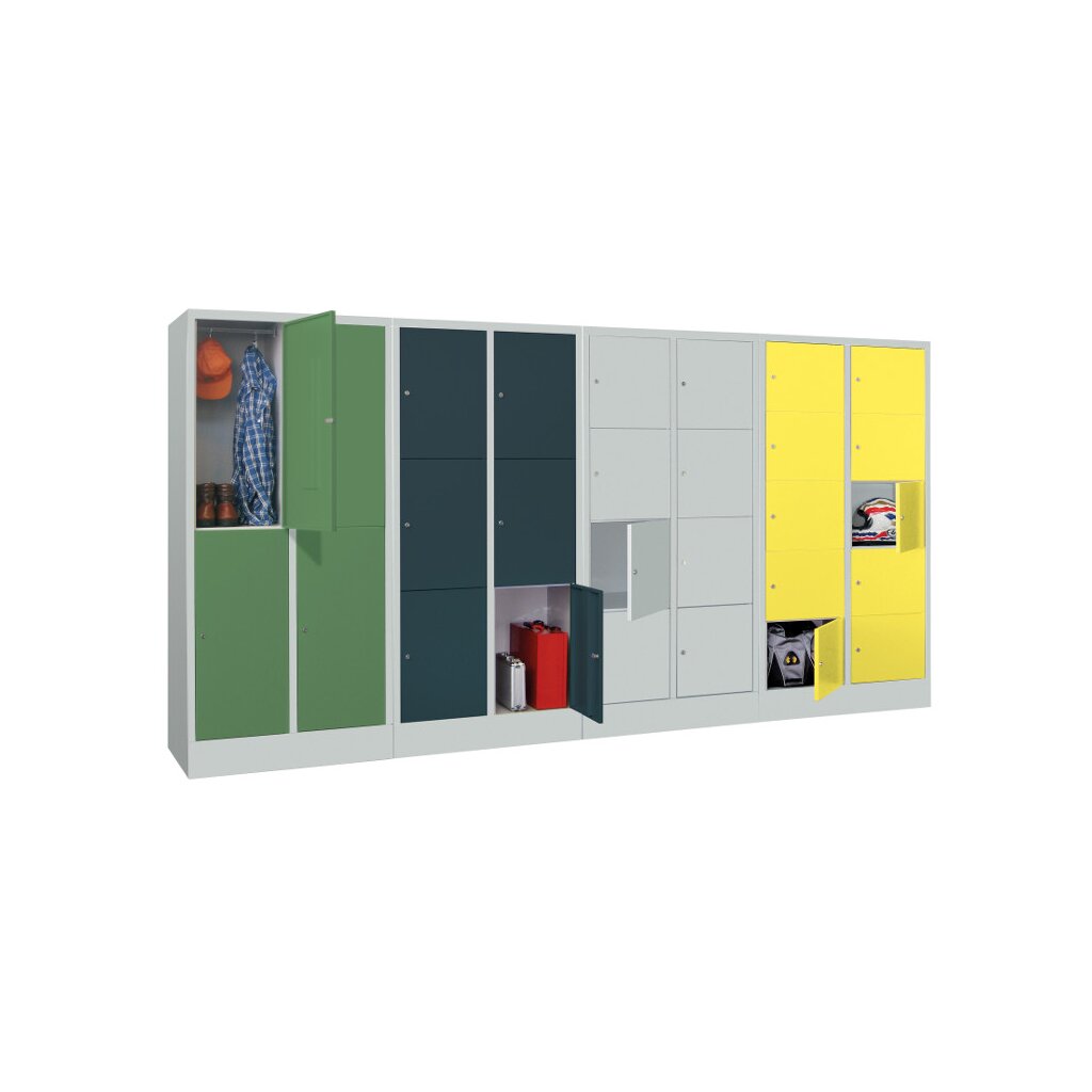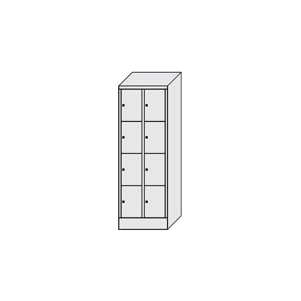 Insgesamt: 8 Fächer, 2 Abteile: 4 Fächer übereinander und 2 Fächer nebeneinander.