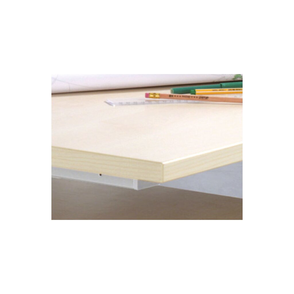 Als Tischplatte kommen Spanplatten der Güteklasse E1 entsprechend der DIN 68765 in einer Stärke von 25mm zum Einsatz. Die Kanten sind mit einem umlaufenden ABS Kantenschutzprofil, 3mm stark gerundet. Melaminharzbeschichtete Platte.