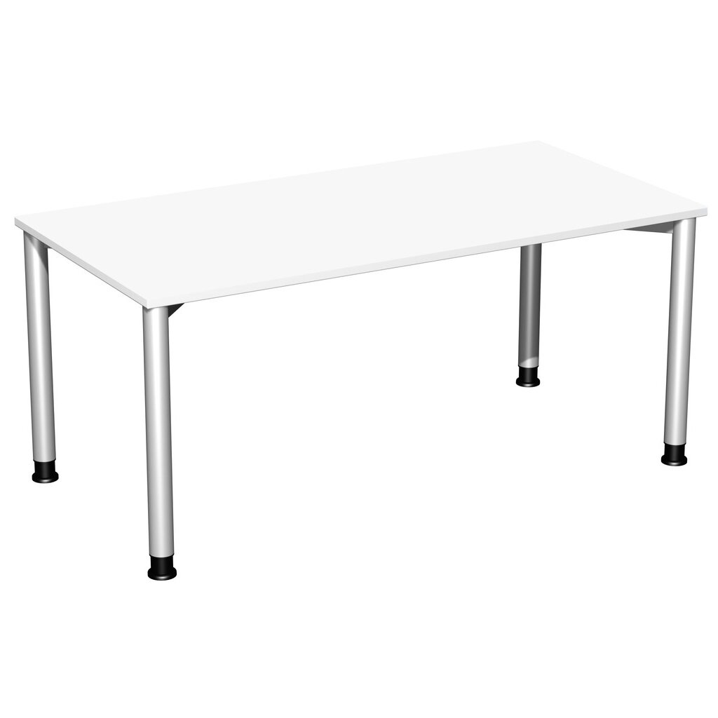 Schreibtisch Rundfuss, höhenverstellbar, 160x80 cm Weiss/Silber
