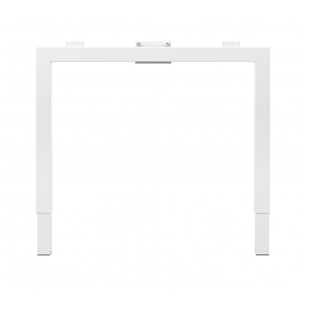 Seht stabiles selbstragendes Gestell. Die Stabilisierung findet über die Metalltraverse statt und nichht wie bei günstigen Gestellen über die Schreibtischplatte.