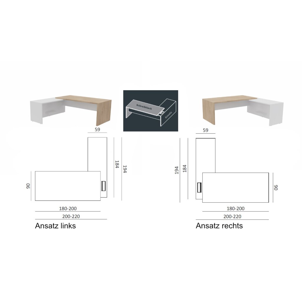 Ansatzmodul verfügbar in den Dekoren: