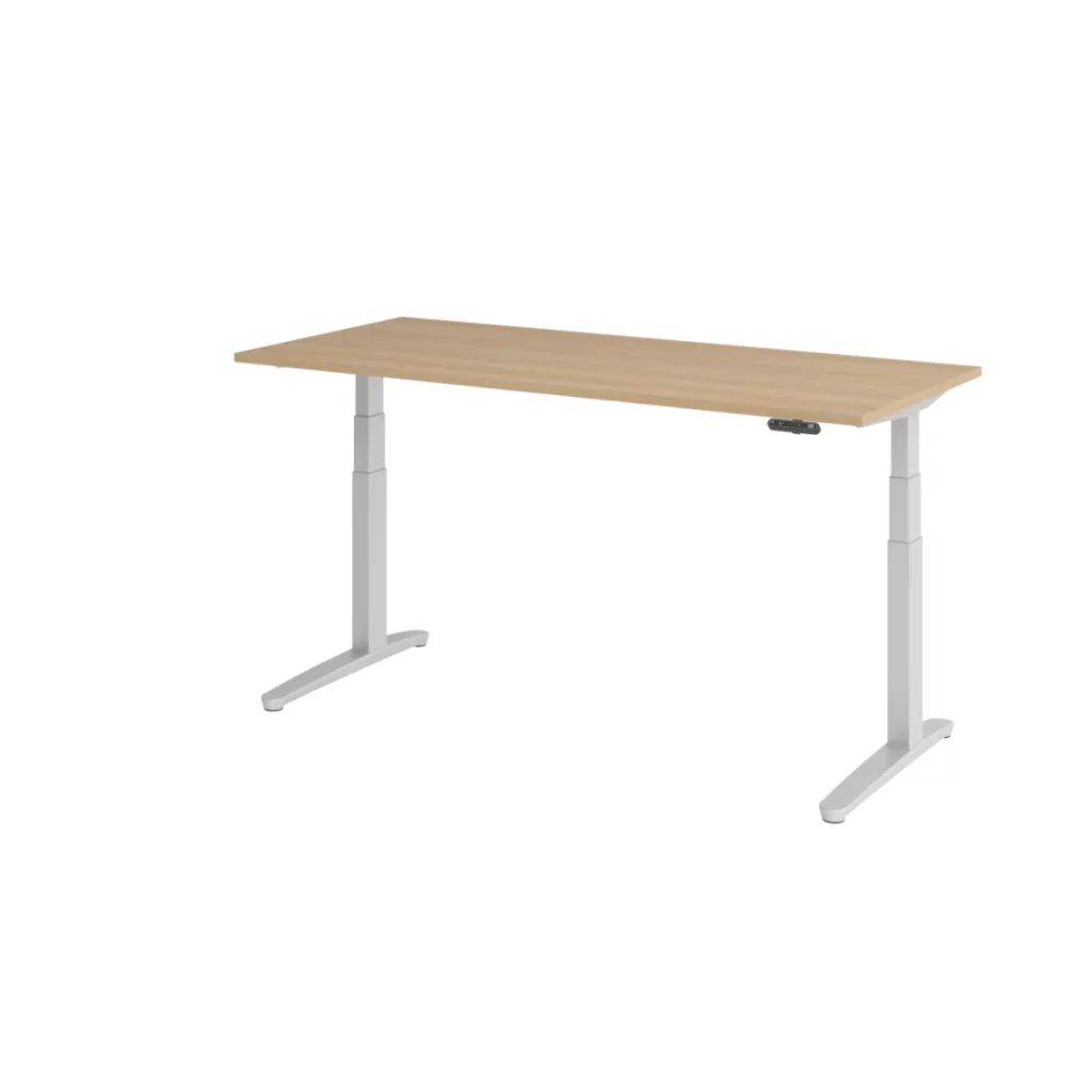 Schreibtisch elektrisch höhenverstellbar 180 x80, Dekor: Eiche, Gestell: Silber