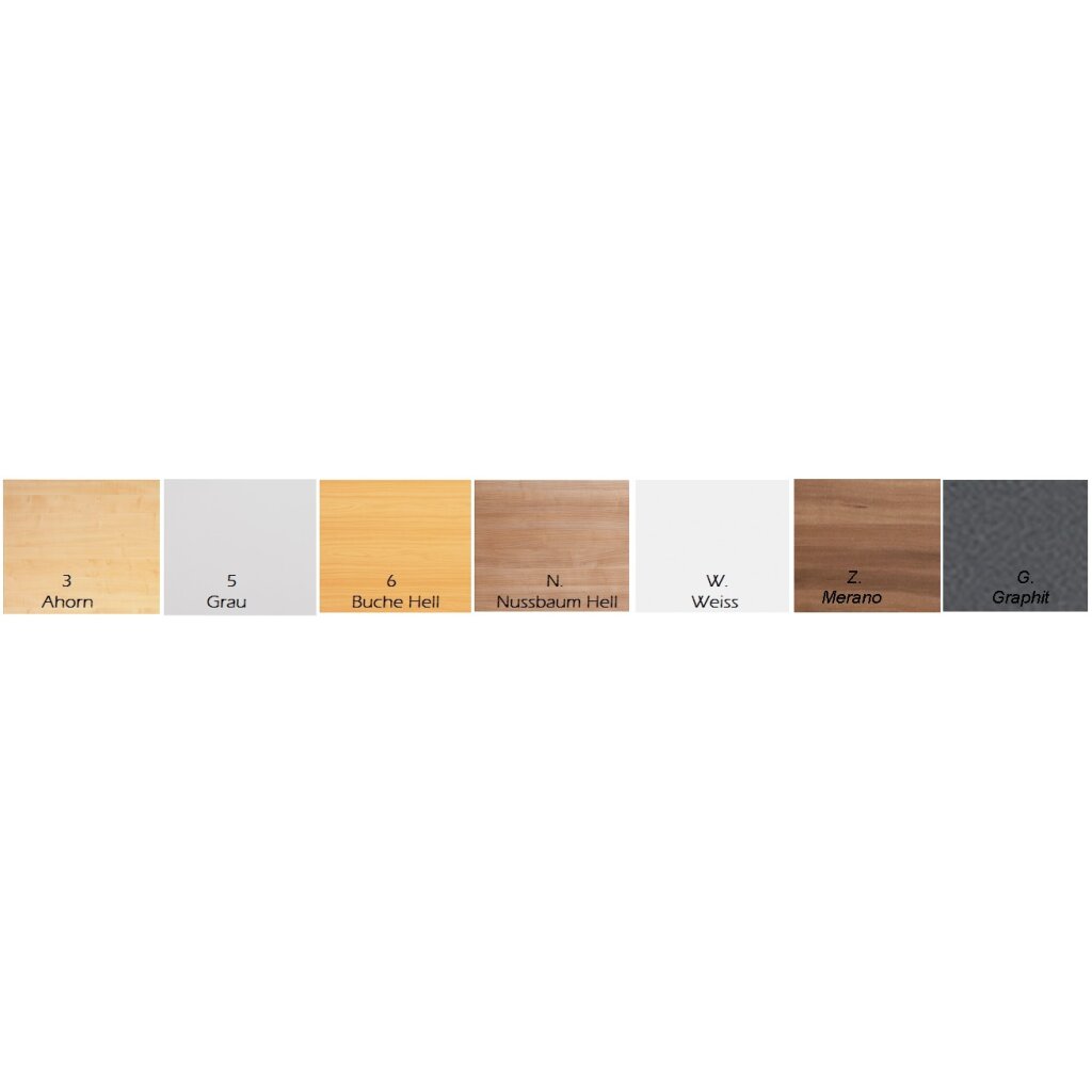 • Schreibtischplatte 2,5 cm starke melaminharzbeschichtete Spanplatte (nach DIB 68765)  mit umlaufenden gerundeten Kantenumleimer 2mm