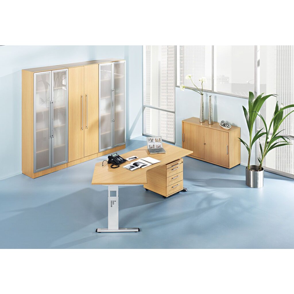 Zusätzlich können Sie den Schreibtisch mit Besprechungsanbauten und Containern ergänzen.