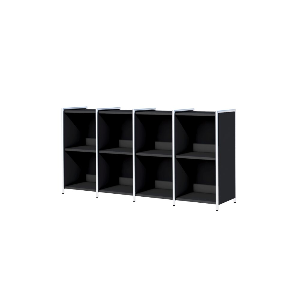 Die Stellfüße ermöglichen ein exaktes Ausrichten, auch auf leichten Bodenunebenheiten. Regale ausgestattet mit Sichtrückwand.