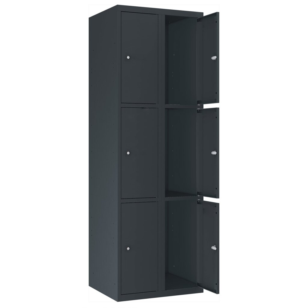 Insgesamt 6 Fächer, 2 Abteilreihen mit je 3 Türen übereinander