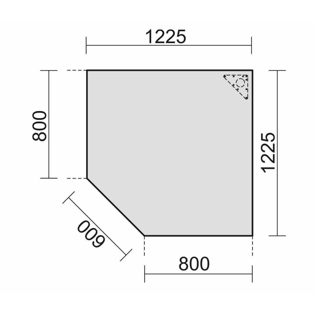 Maß: 122,5 x 122,5 cm, Anstellseite für Tischplattentiefe 80 cm,