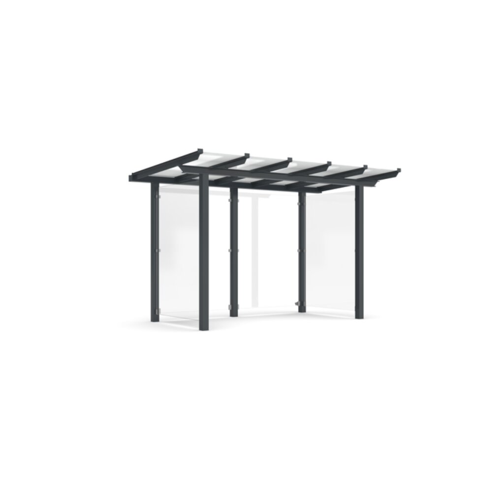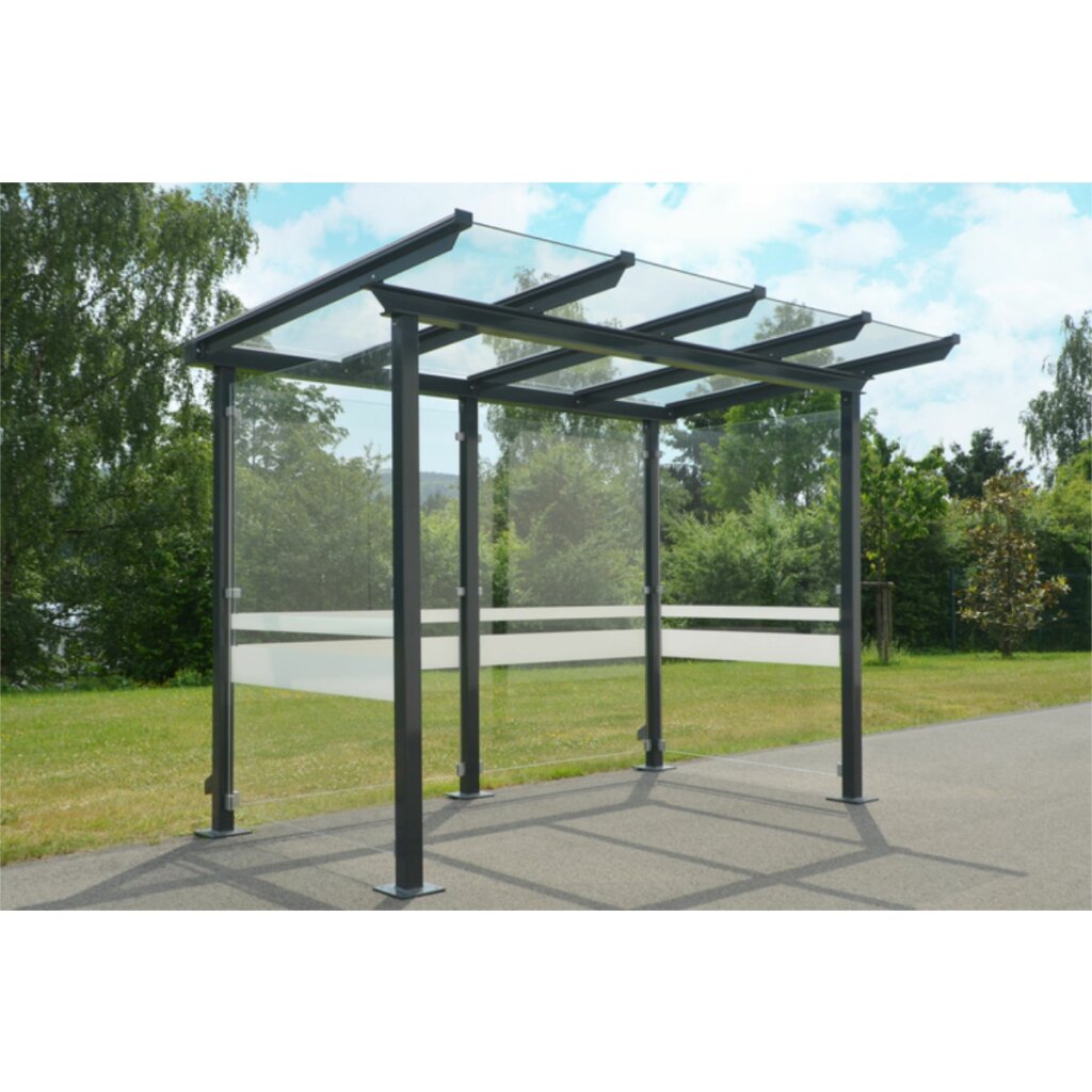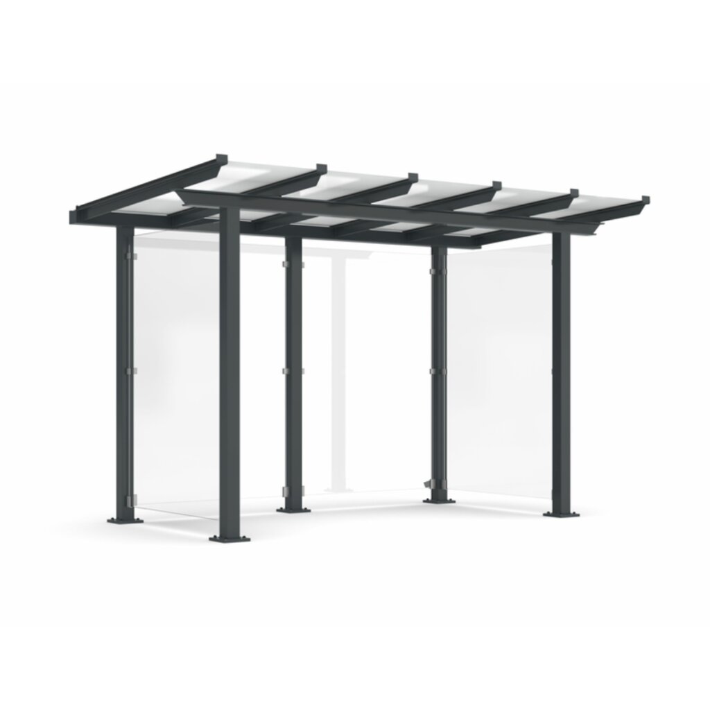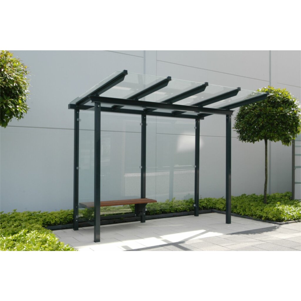Wartehalle 'Modell P12', einseitig Anlieferung fertig montiert - Selbstabladung Beleuchtung ohne Seitenwände und Rückwand/Dekor/Sichtschutz ESG - glashell