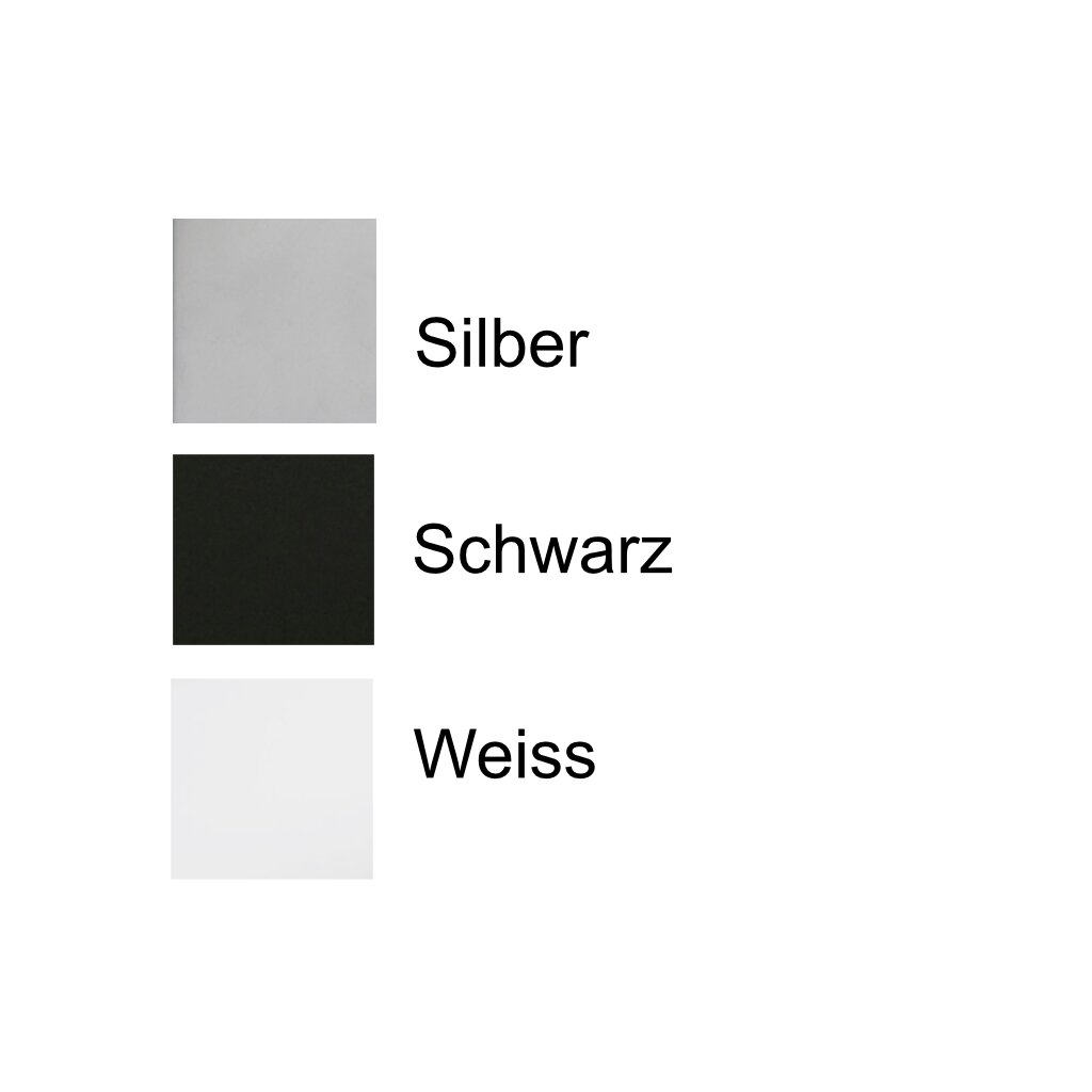 In folgenden Farben erhältlich: Schwarz, Silber oder Weiß
